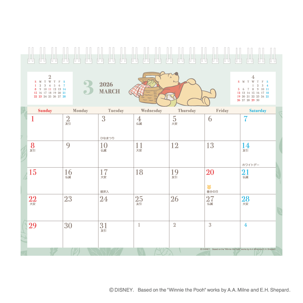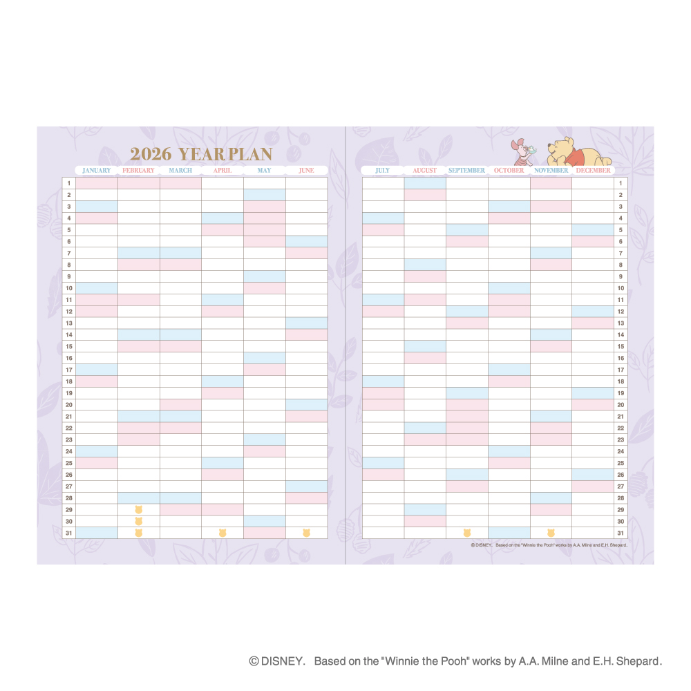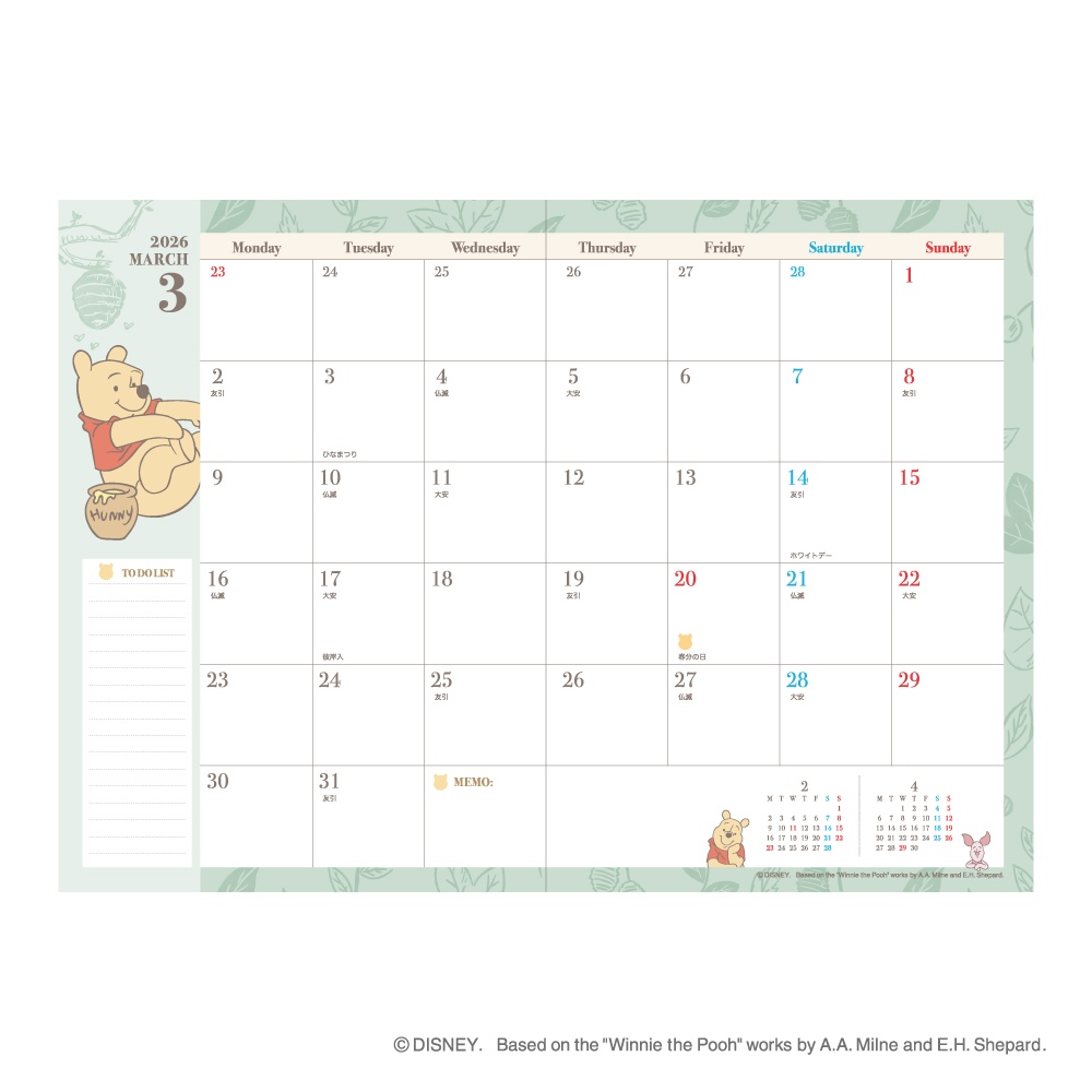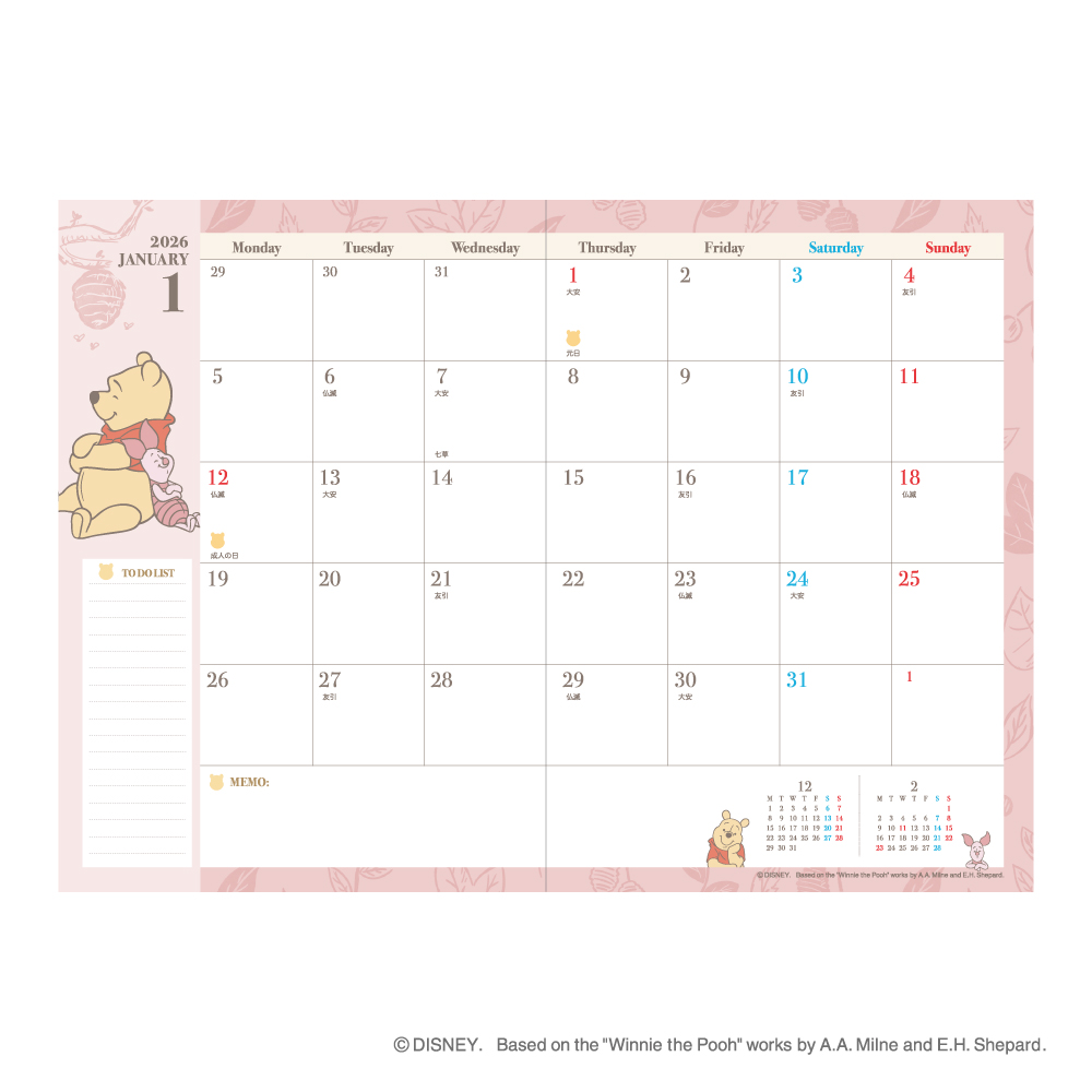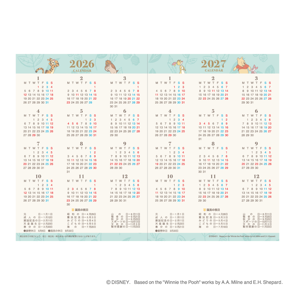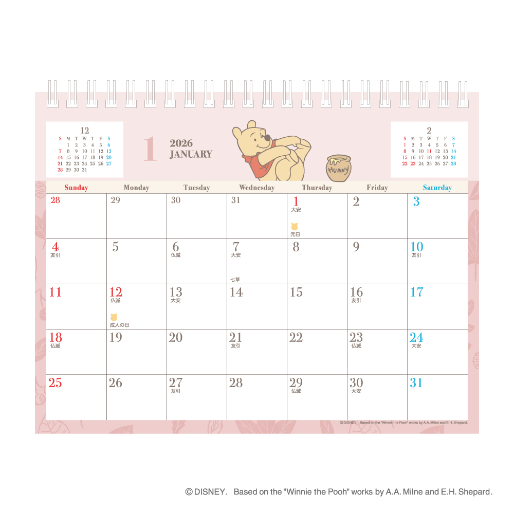 2026年版 <ファミリーマートにて販売> くまのプーさんデザイン ダイアリー A5 と カレンダーを販売開始いたします。